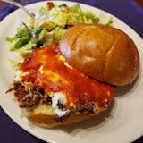 Breaded eggplant topped with mozzarella cheese & tomato sauce served with pasta. Supersized for your party.